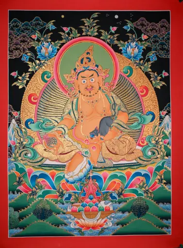 Yellow Jambhala Thangka – Radiant Wealth Landscape